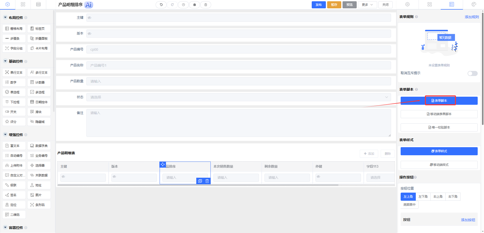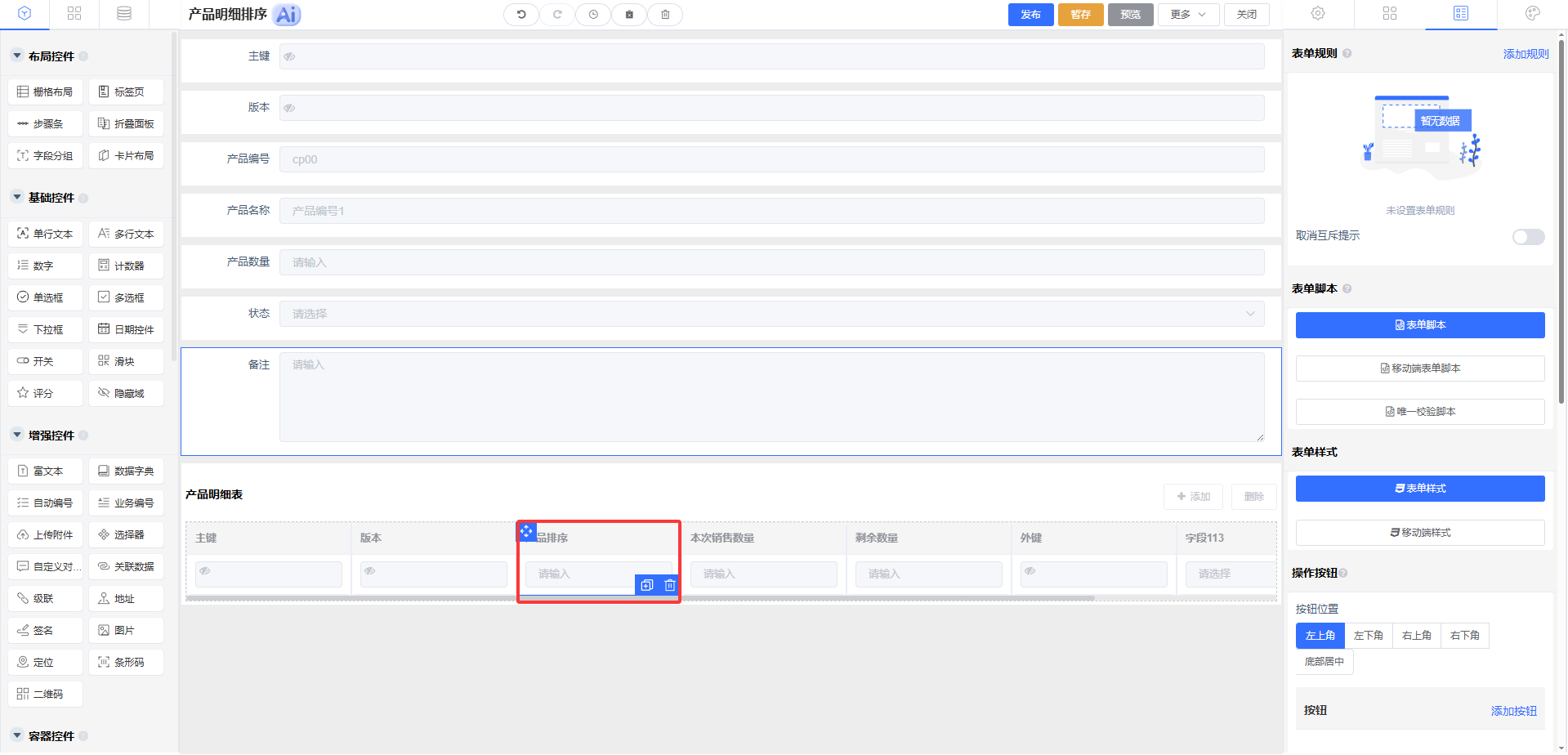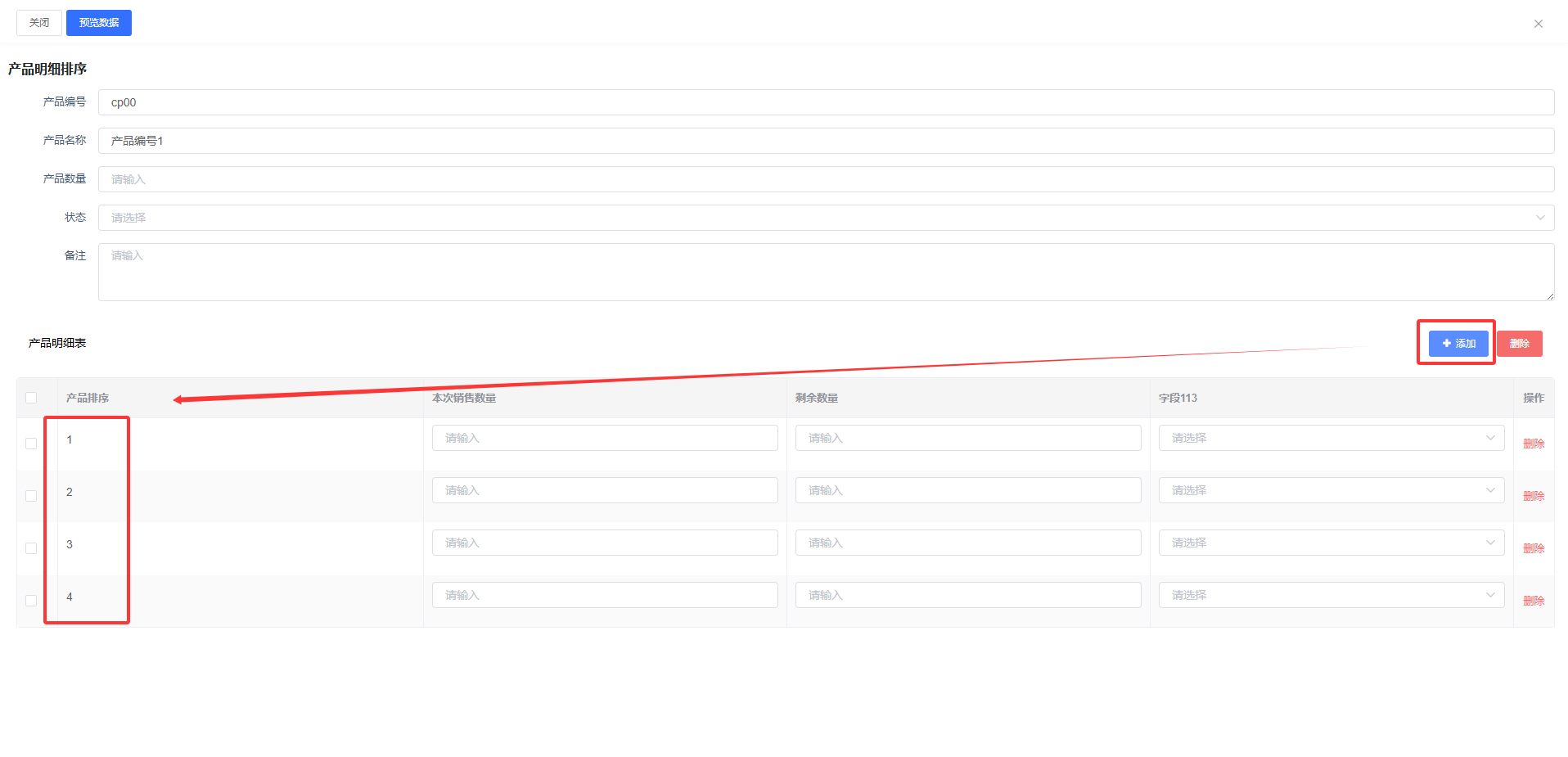 1、添加产品明细时,可以自动回填排序,以便后续查询数据时可以根据添加时的序号进行排列。
